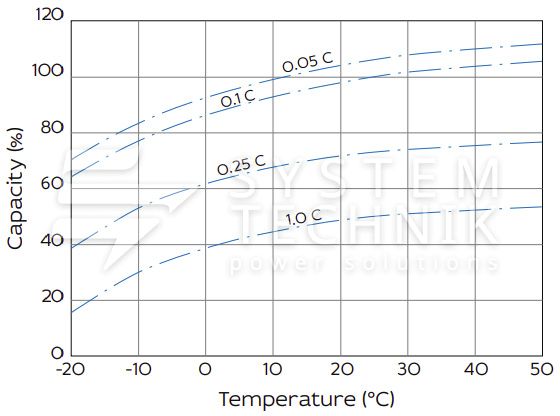 - Срок хранения без подзаряда: 6 мес. при 25°C;