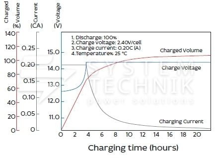 - Срок хранения без подзаряда: 6 мес. при 25°C;