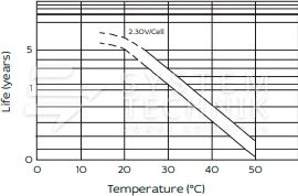 - Срок хранения без подзаряда: 6 мес. при 25°C;