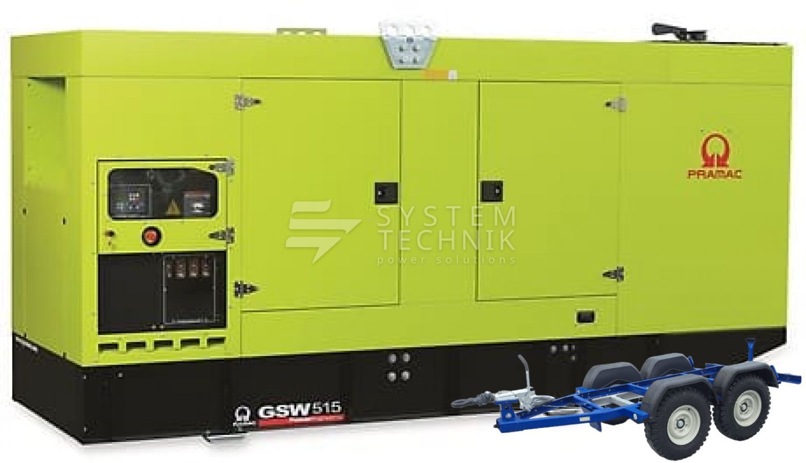 - Дизельный генератор Pramac GSW 515 M 400V В кожухе на прицепе